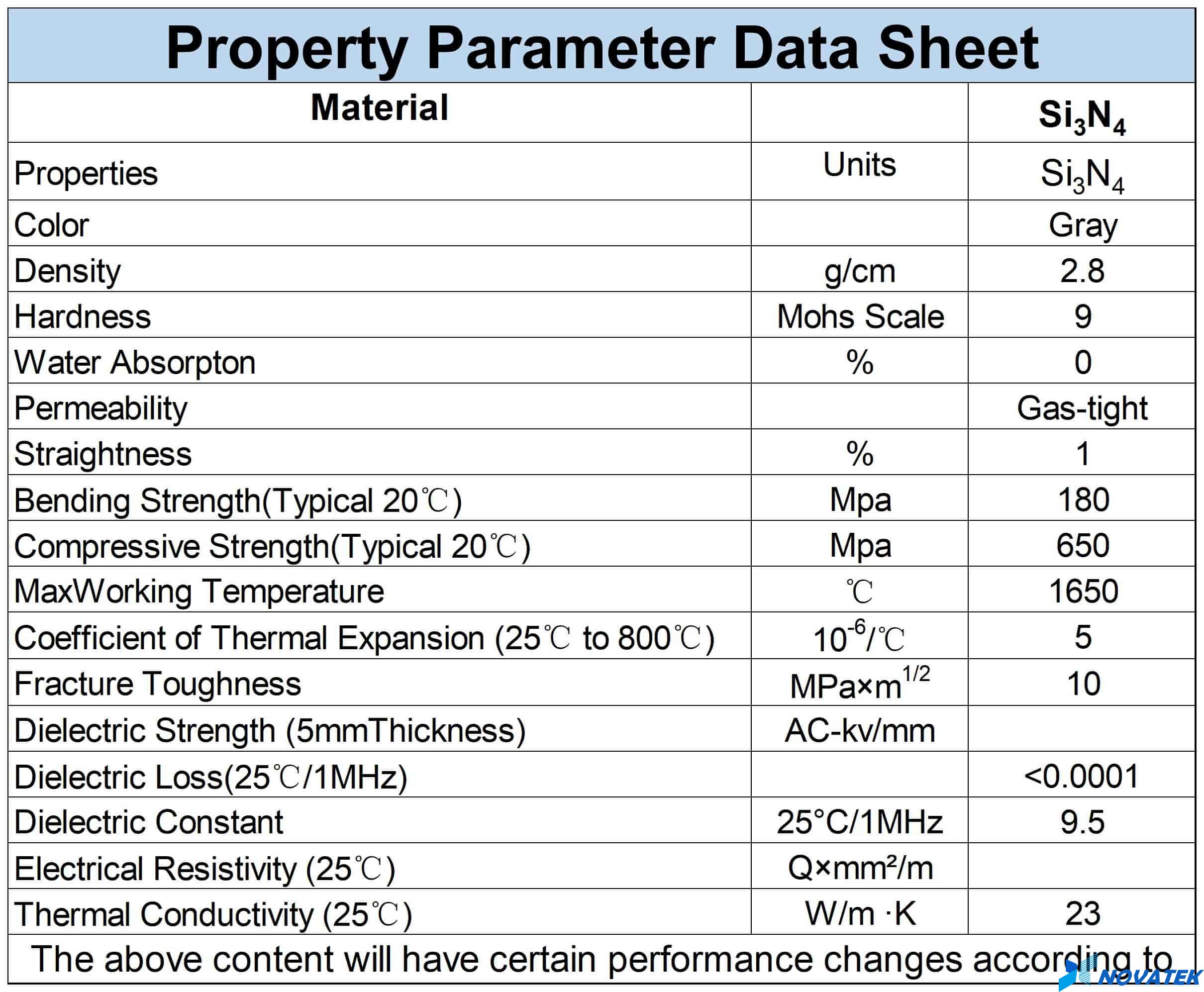▼Technical Properties of Si3N4 Silicon Nitride Ceramic